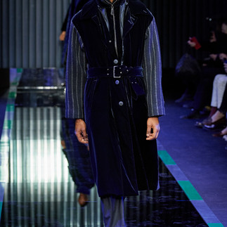 Nesta temporada, esses valores eternos se manifestaram em uma suavidade oportuna. Isso se traduziu em ideias técnicas, como as lapelas de um smoking feminino superleve construído de modo que parecia que estavam escorregando de seus ombros, ou os fracos padrões cortados a laser de um casaco de lã falso macio. Na fabricação, ganhou forma na alfaiataria masculina de veludo gelado e em roupas de fora, como um manto de marfim acolchoado como corda e um manto masculino de veludo macio com um painel nas costas listrado. Além da declaração verbal e do gesto de silêncio de Armani hoje, havia uma dignidade silenciosa e poética nesta coleção. Em fevereiro de 2020, sua marca se tornou a primeira a cancelar um show por precaução em relação ao Covid-19. Dois anos depois, como o designer mais experiente da indústria, ele mais uma vez demonstrou a sensibilidade e a responsabilidade que farão parte de seu legado como um homem com o coração no lugar certo.