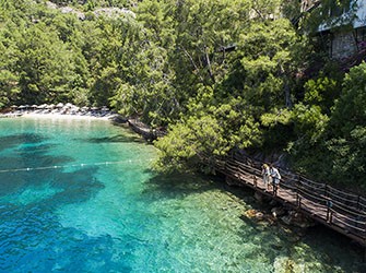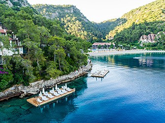 O Hillside Beach Club está escondido em uma encosta verdejante, ao longo da Costa Turquesa da Turquia, que desce suavemente em direção a uma bela baía com praia e águas cristalinas. Você pode passear pela floresta de pinheiros perfumadas, pegar um barco para Serenity Beach, ou caminhar na direção oposta à Silent Beach, ambas apenas para adultos. A cidade litorânea de Fethiye fica a cerca de 5 km de distância, oferecendo uma cidade velha com ruas de paralelepípedos e mercados, além de um bairro moderno com bares, cafés e restaurantes animados. Você também pode viajar seis quilômetros para ver os antigos túmulos rochosos da Lícia esculpidos em um penhasco, ou dez quilômetros para visitar a famosa lagoa azul de Oludeniz. O Aeroporto de Dalaman fica a cerca de 35 milhas a oeste do resort.